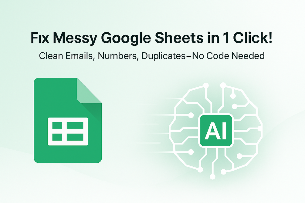 AI Google Sheets Cleaner – Fix Messy CSVs in 1 Click (Emails, Numbers, Duplicates | No Code)